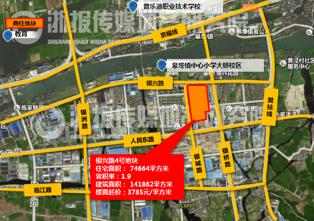 彼时最高宅地记载为融创项目标9476元/平方米。银兴4号地块紧邻银兴和银城。